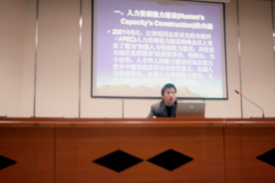 11月20日晚,2008――2009学年度第一学期“科学、人文、艺术”素质教育系列讲座在图文信息中心大报告厅继续进行,经济贸易系朱镇斌老师作“论当代大学生人力资源能力建设与创新能力培养”专题讲座,近500名师生到场听课。朱老师从人才和人的能力建设在社会经济发展中的意义、创新人才工程、办学理念的更新、教育管理机制变革和教学培训模式建立等方面论述了当代大学生人力资源能力建设与创新能力培养。
