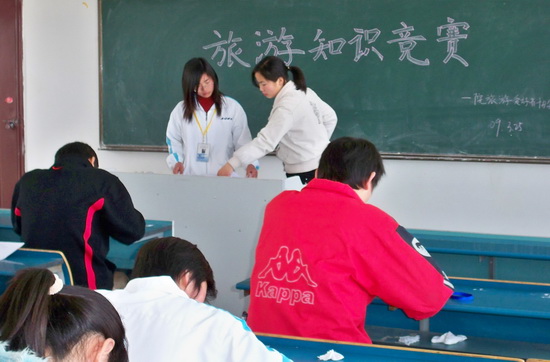 3月25日中午,院旅游爱好者协会举办了一场旅游知识竞赛。院旅游爱好者协会会员参加竞赛。为扩大参与面,比赛主要采取笔试的形式。竞赛内容涉及景点、民俗、美食、宗教等与旅游相关的问题,旨在普及旅游知识,弘扬旅游文化。本次比赛题型多样,以尽量满足参赛者的个性化需要。