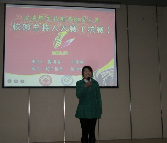 本次比赛由学院团委主办,院广播站和院学生会承办,历时两个星期。11月30日前由各系部团总支、学生会组织预赛,共选拔了17名优秀选手参加了决赛阶段的比赛。