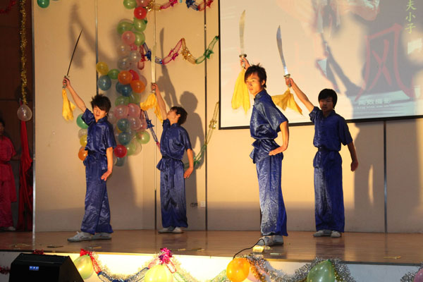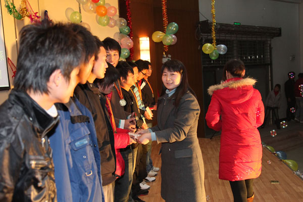 为共庆新年,机电工程系团总支于12月24号晚上在我院图文信息中心一楼大报告厅隆重举行了“师生元旦联欢晚会”。院学生处、机电工程系负责人及该系全体教职员工出席并观看了晚会。 晚会在动感强劲的舞蹈《龙的传人》中拉开了序幕。相声、独唱、小品、乐器,武术表演等形式多样的节目轮番登场,让人目不暇接。整场晚会高潮迭起,掌声不断。有余主任、叶鹏鹏、何玲玲、江建刚、章杰义等老师的深情高歌,有包袱不断、让人忍俊不禁的相声、小品,有韵律十足的拉丁和恰恰表演,有原汁原味的黄梅戏联唱……有感动,有笑声,外面虽是数九寒冬,报告厅内却暖意阵阵。 晚会在《好兄弟》的舞蹈中划下了圆满的句号。最后所有老师和演员上台合影留念,师生共同度过了一个温馨而又热闹的平安夜晚。