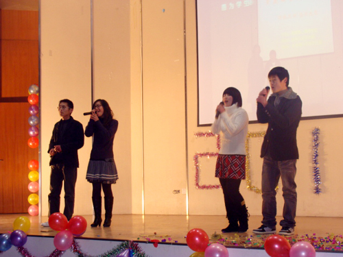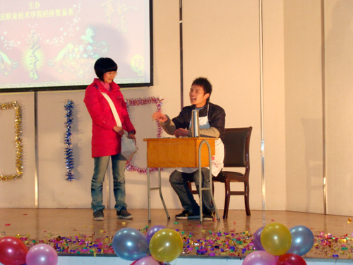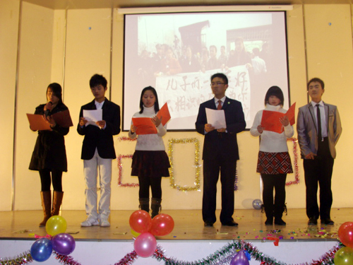 12月25日晚,经济贸易系在图文信息中心一楼报告厅举办“庆元旦迎新春”大型文艺晚会。系主任朱重生、副主任汪全报、团总支书记王金根等十多位老师及500余名学生到场观看演出。 伴随着礼花声送出的新年祝福,晚会在节奏明快的现代舞中拉开帷幕。“赢得一场光荣的胜利,用时间纪念梦想的神奇”,四人小合唱《We Are Ready》表达了众人对未来的憧憬与期待;舞台剧《生命延续爱》通过再现长江大学学生何东旭、陈及时、方招等人搭救落水者最后英勇牺牲的场面,诠释出“生命有限,爱无尽”的生命意义,感染了在场的每一位观众;民族舞《茉莉花》的表演者以婀娜的舞姿表现茉莉花盛开的美丽景象,博得观众席上阵阵掌声,将整场晚会推向高潮。教职工代表程锦老师等也登台表演,并获得全场热烈的掌声。 晚会开始时,系主任朱重生致辞。他首先向各位老师和全体同学表达新年祝福,祝贺本场晚会成功举办。他说,即将过去的2009年我院顺利通过安徽省高等职业院校人才工作评估,经济贸易系在各项活动中亦取得骄人成绩,他感谢广大师生对经济贸易系工作的大力支持。他希望各位老师和同学在新的一年中工作努力、学习勤奋,取得更大进步。 晚会上,该系领导和老师还为市级先进集体、市级三好学生及院级先进个人颁发了证书和奖品。晚会在《让世界充满爱》的歌曲声中结束。