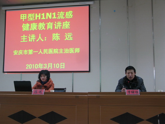 为了防控甲型H1N1流感及春季传染病,310日下午,学生处与总务处特联合举办专题讲座,邀请安庆市第一人民医院主治医师陈远来我院作专业知识介绍。