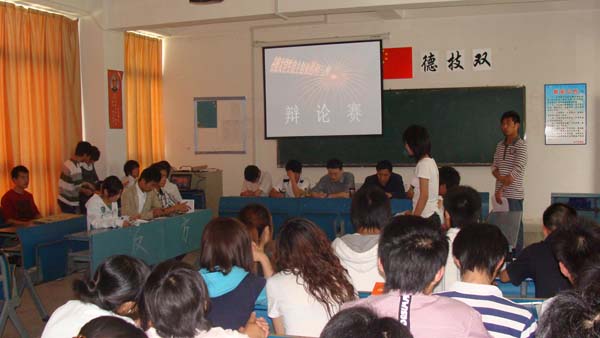比赛开始主持人宣布了辩论赛的基本规则,08计算机通信技术专业班的一号辩手首先登场,出色的开场白赢得热烈掌声,而09应用电子技术专业班一号辩手一番流利地陈述更赢得满堂喝彩。辩手们针锋相对、唇枪舌剑,,其敏捷的思维、出色的口才,展示了辩手们的激情与活力。