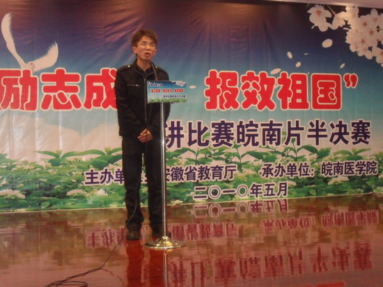 5月18日,安徽省第三届“自立自强、励志成才、报效祖国”大学生演讲比赛半决赛(皖南片)在皖南医学院举行,我院建筑工程系何良宇同学以优异的成绩晋级全省决赛。