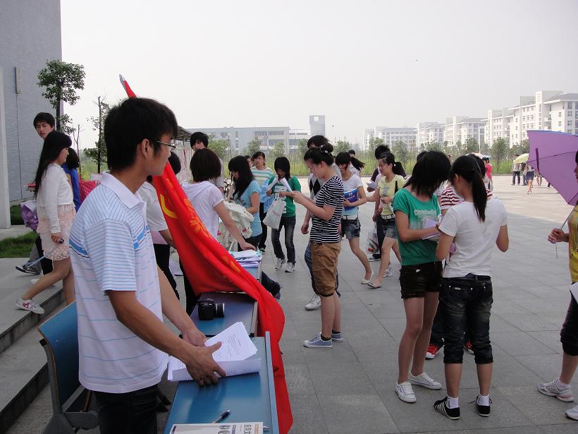 5251230分,300多名参加个性及能力测试的同学准时来到图文信息中心四楼机房,在专业老师的安排下规范的进行相关测试活动,整个机房安静有序,所有参加测试的同学都认真按照要求在指定时间内完成测试。下午两点,大学生心理健康协会在二号教学楼前开展了心理健康知识宣传及大学生个性倾向调查活动。心理健康教研室黄秀娟老师还带领心理健康协会的同学一起做起了一些有趣的心理游戏活动。学生处副处长彭金德和团委副书记余锋也亲临现场观摩了整场活动。