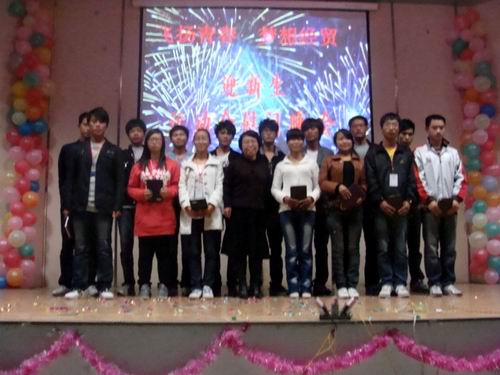 经贸系系主任朱重生在晚会上代表该系作了发言,朱主任不仅对经贸系10级新同学的到来表示了热烈的欢迎及祝贺,并对本届运动会所取得的优异成绩表示充分的肯定,并祝愿经贸系的发展如运动会的口号:更快、更高、更强!经贸系副主任汪全报、系党总支副书记朱宜娟老师分别为该系优秀运动员和该系学生会、《经贸青年》等服务人员颁发奖状。
