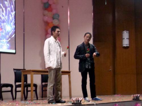 晚会上,高小英同学将《同手同脚》这首歌曲演绎得唯美温馨,何玲玲老师演唱的《好运来》将全场喜庆的气氛推向高潮,朱镇斌老师的即兴清唱《披着羊皮的狼》获得了满场的掌声,将晚会气氛推向了另一个高潮!话剧《同桌的你》不仅让我们感受到语言的魅力,还让我们明白了大学时代友谊的珍贵。