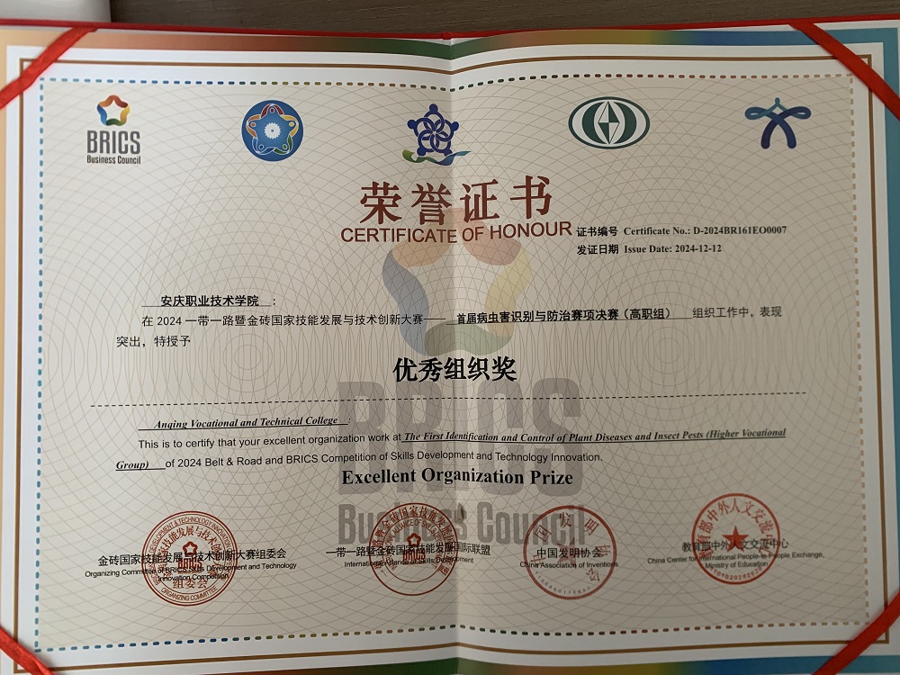 近日,“一带一路” 暨金砖国家技能发展与技术创新大赛,首届数智农业种植技术创新赛项和首届病虫害识别与防治赛项比赛结果揭晓。我校农林与服装学院植物保护与检疫技术专业12名学生共斩获三个二等奖、两个三等奖。