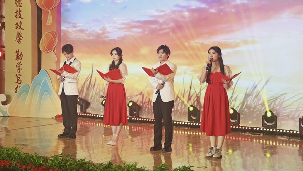 兄弟院校同学表演的相声节目《05后的烦恼》,以风趣诙谐幽默的语言,逗得观众们捧腹大笑;歌舞《采茶纪》融合了长笛演奏、歌曲演唱、舞蹈伴舞三种形式,笛音悠扬,歌声婉转,舞姿婀娜,带来视听双重享受;拉丁双人舞《兰亭集序》将书法之韵与舞蹈之美完美结合,尽显国风音乐和现代舞蹈;歌曲《河流》旋律激昂,如汹涌浪潮般冲击观众的心灵;民族舞《落春踏雪》用优美的舞姿展现出独特的民族风情,令人陶醉;《百年交响》的朗诵者慷慨激昂,回顾百年峥嵘岁月;舞蹈《我最红》以动感活力燃爆全场,展望2025年继续红红火火。
