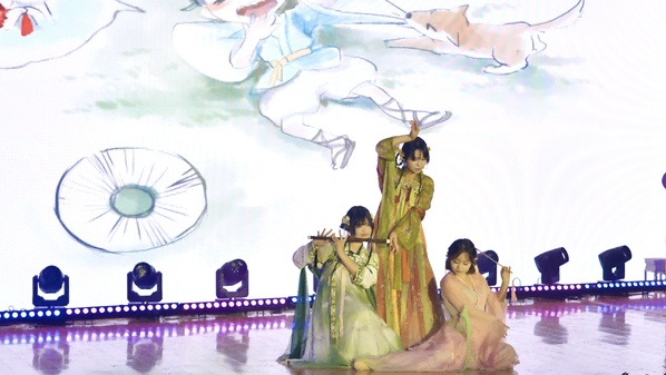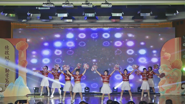 晚会在活力四射的开场舞《加油!Amigo》中拉开精彩序幕,啦啦操活力飞扬,拉丁舞热情奔放;吉他弹唱《那些花儿》,表演者用动听悦耳的歌声赢得了观众的热烈掌声;《茉莉花》的舞者们身姿轻盈、舞步翩跹;街舞《POP!》凭借利落的动作与精准卡点,爆发出超强力量感;青春宣讲《“常”探戏韵》与黄梅戏《别洞观景》珠联璧合,生动展现黄梅戏的婉转唱腔;舞蹈《Left·right》,舞者们以轻快而富有节奏感的脚步动作开启表演,每一步都精准地踩在音乐的节拍上,她们旋转、跳跃,每一个转身都带着自信与洒脱;歌曲《爸爸妈妈》深情演绎,触动人心,传递出深厚亲情;舞蹈《一梦敦煌》以其独特的艺术风格和强烈的视觉冲击给人留下了深刻的印象,以绚丽服饰、优美舞姿再现敦煌文化的震撼之美。