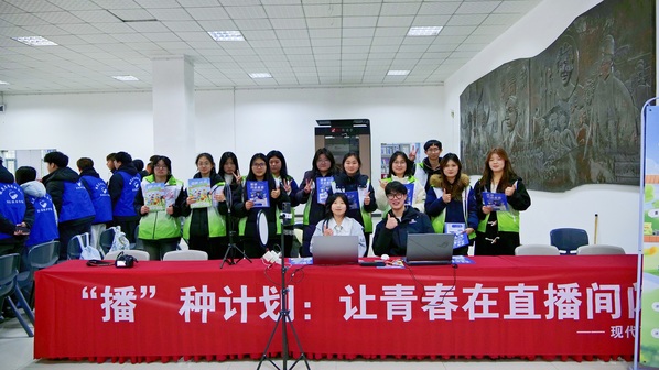 现代商务学院“‘播’种计划:让青春在直播间闪光” 项目别出心裁。该院师生们充分发挥专业优势,积极开展电商直播知识与技术宣传。镜头前,主播同学手持商品,流畅自如地向观众介绍。她身后的展台上,摆放着同学们的手工艺品、学生创业团队的文创设计,一场融合专业技能实训与公益助力的创新实践正悄然绽放光彩。