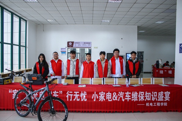 机电工程学院的“小家电 & 汽车维保知识盛宴” 项目,实实在在地解决了同学们“用坏了不会修”的困境。不知哪里出问题的电风扇又能转动了,自行车的链条也稳稳地安回去了,现场的同学们还印制了宣传资料,详细地整理了小家电和汽车的日常使用注意事项和基本维护方法,用专业知识为校园内外的师生们传递脉脉温情。