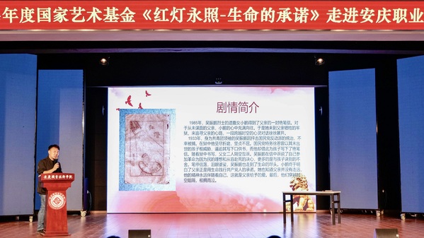 该剧目由安徽黄梅戏艺术职业学院师生创作演绎,先后入选2024年国家艺术基金舞台艺术资助项目,参加2024年中国(安庆)黄梅戏艺术节剧目展演。正式演出前,安徽黄梅戏艺术职业学院学术委员会常务副主任、一级导演胡继宗老师,深情讲述了剧目的创作背景和故事概要,创作团队以安庆本土革命烈士吴振鹏为原型,将革命烈士的英雄事迹融入传统文化黄梅戏,带领我们近距离了解安庆籍革命烈士吴振鹏的革命故事。