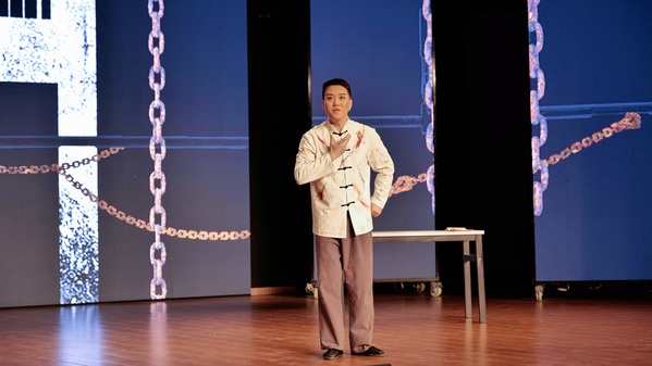 演出过程中,演员们的铿锵念白和婉转戏腔,将革命志士的坚毅与柔情表现得淋漓尽致,沉浸式的表演让现场师生仿佛穿越时空,深刻感受到革命先辈的崇高精神。剧目的结尾,以父女二人隔空互诉的方式,展现了吴振鹏用生命践行共产党人的承诺,为国为民的理想和从容赴死的决心,让师生观众都为之感动。