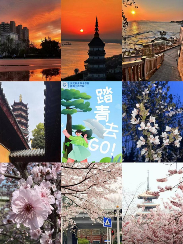 历经十天的作品征集,参赛者以独特视角呈现了春日的多维画卷。投稿作品中既有樱花纷飞后的教学楼、有晨光晕染下的振风塔、还有捕捉到雨后青苔漫过石阶、紫藤垂落古建筑窗棂等等。这些作品的构图无不展现着建筑与自然交融的匠心。