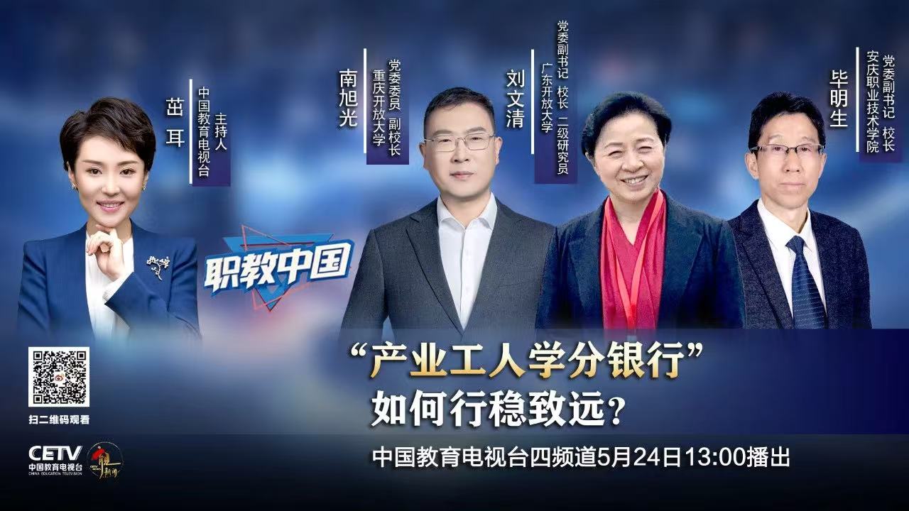 随着全国首家“产业工人学分银行”在我校落地,中国教育电视台《职教中国》栏目,邀请我校党委副书记、校长毕明生做客演播厅,与广东开放大学党委副书记、校长刘文清,重庆开放大学副校长南旭光一起,全面解析这一职教创新模式如何赋能产业工人成长、服务区域经济升级。