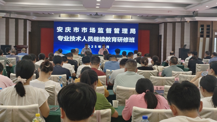 为深入贯彻中央八项规定精神学习教育,促进干部队伍作风建设,推动队伍能力升级,抢抓数智化转型与绿色发展机遇,7月5日至6日,我校承办的安庆市市场监督管理局专业技术人员继续教育研修班在安庆迎宾馆开班授课。安庆市市场监管局党组成员、总工程师徐冬冬出席开班式,我校继续教育学院院长姚咏主持开班仪式,市场监管系统150余名专业技术人员参训。