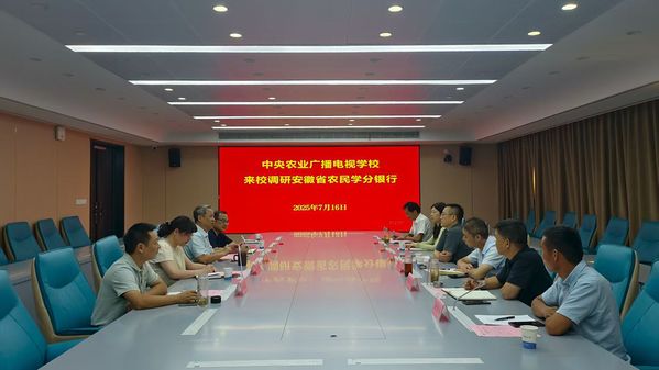 7月16日,中央农业广播电视学校职业教育处处长欧宇、安徽省农业科技教育中心主任崔艺志一行来我校调研农民学分银行建设情况。校党委副书记李克让、安庆市农业农村局副局长王辉接待调研组一行。