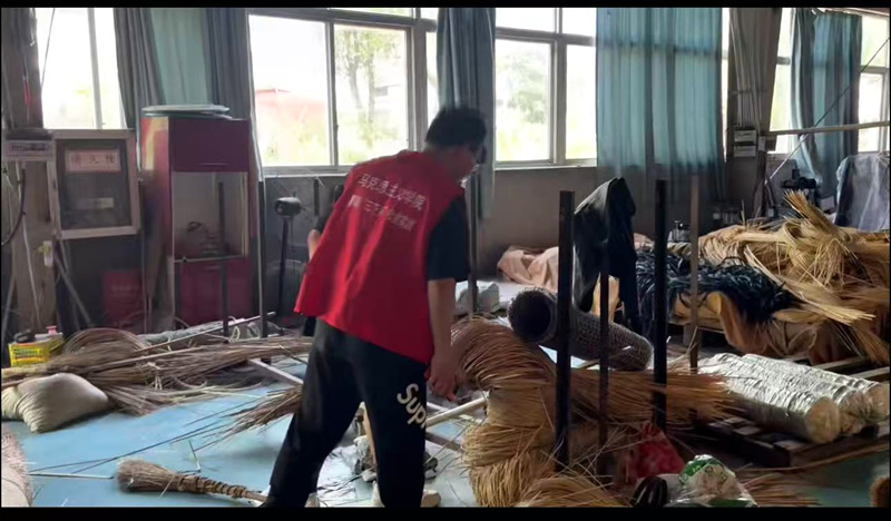 当日下午,团队成员来到潜山舒席作坊。传承人详细讲解并示范了剖篾、编织等技艺,成员们纷纷动手尝试,学习舒席的编织技巧,亲身体验这项古老技艺的独特魅力。学生在编织过程中感慨道:“舒席的编织不仅仅是一种技艺,更是一种对传统文化的坚守和传承。我们希望通过自己的参与和宣传,让更多人了解舒席、爱上舒席,让这项技艺在新时代焕发新的生机。”
