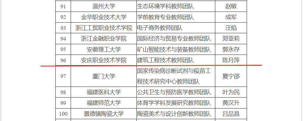 近日,教育部公布第三批“全国高校黄大年式教师团队”创建示范活动认定名单,我校陈月萍教授领衔的建筑工程技术教师团队上榜。这是我校继获得首批国家级职业教育教师教学创新团队以来,在师资队伍建设方面获得的又一项国家级教师团队荣誉。同时,我校是安徽省第一所获批认定该称号的高等职业院校。