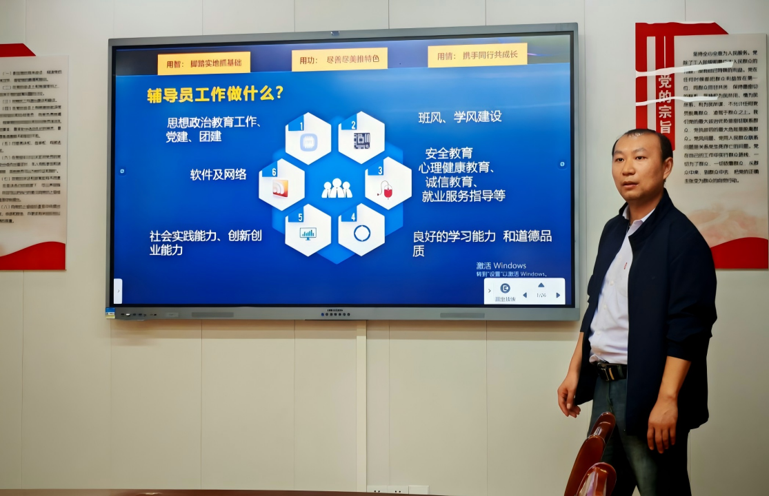 活动中,学生工作负责人为受聘担任指导教师的辅导员颁发了聘书。一纸聘书,既是一份荣誉与信任,更是一份沉甸甸的责任与担当,象征着学院学生工作优良传统的接续与传承。在师徒结对这一温馨环节中,新老辅导员一一结对,新辅导员向各自的“导师”恭敬致意。简单的仪式背后,是新辅导员虚心求教的决心,也是老辅导员倾囊相授的承诺。仪式结束后,辅导员余德龙老师通过精心准备的课件和新生辅导员分享了近期重点工作之一困难认定工作的注意事项及自己的班级管理工作经验。在场的辅导员均表示获益非浅。
