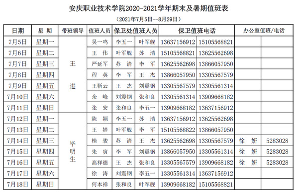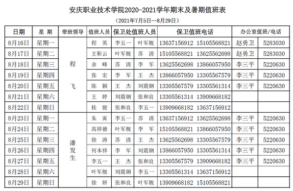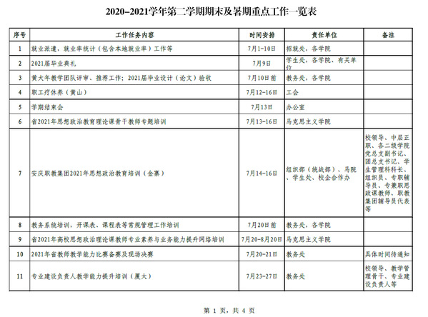 2020-2021学年第二学期即将结束,为确保各项工作顺利进行,现将期末和暑期有关工作安排通知如下: