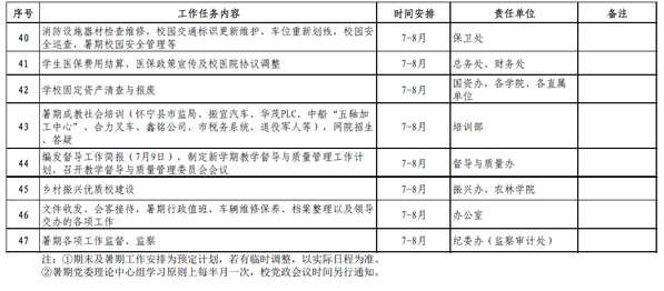 (五)暑期党委会、校长办公会、党政联席会议时间另行通知。