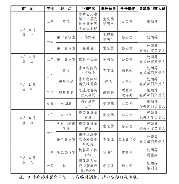 2021-2022学年第一学期第3周(9.13-9.19)工作安排