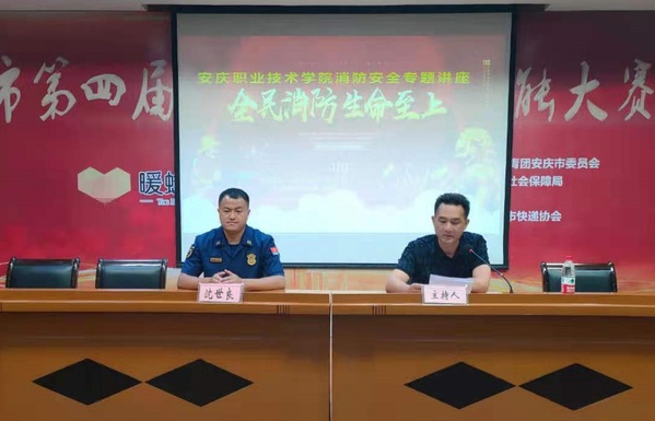 为了让同学们更深入的了解消防安全知识,使每位同学都能树立起消防意识,掌握好消防知识,并具备自救能力。6月9日下午,我校在图文中心三楼报告厅举行了一场消防安全专题讲座,讲座由保卫处副处长叶军舰主持,经开区消防救援大队指导员沈世良教官主讲。来自各二级学院的学生干部、安全员近两百人以及辅导员代表和保卫处全体工作人员,聆听了这场讲座。沈教官从学校案例、火灾基本常识、灭火常识、消防自救逃生四个方面以实例图片演示,图文并茂,讲解生动感人,就如何预防火灾,如何扑灭火灾,以及火灾现场如何逃生等,理论性和指导性都非常强,对提高消防意识具有很强的指导意义。