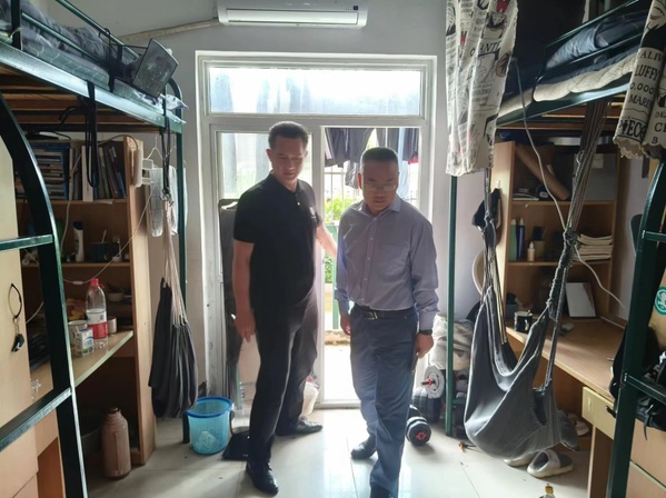 校党委委员、统战部长李五一带队针对学校重点场所和重点领域全方位进行了专项检查。重点就假期学生安全教育工作、防溺水标识检查、消防安全隐患排查以及假期预警机制、防范措施、值班管理等落实情况全面督查。