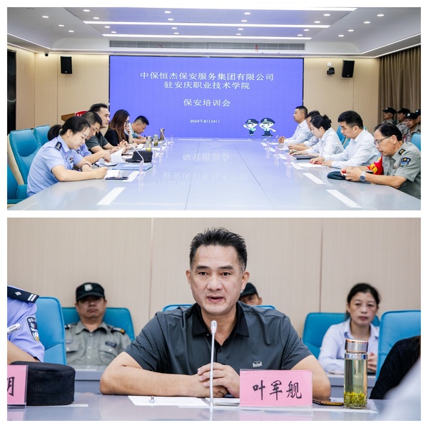 8月14日,在校第四会议室召开学校安保工作度反馈推进暨2024年安保业务培训会。保卫处全体人员、中保恒杰保安服务集团有限公司相艳艳等相关负责人及全体保安人员参加本次会议。特邀了辖区安庆市老峰派出所副所长许国明等莅临指导。