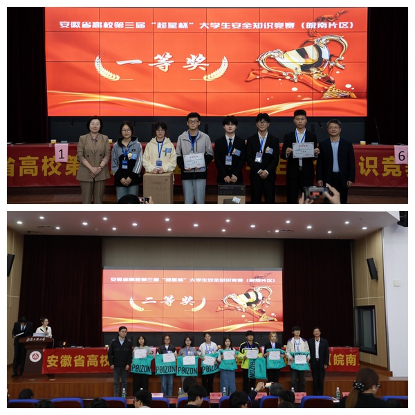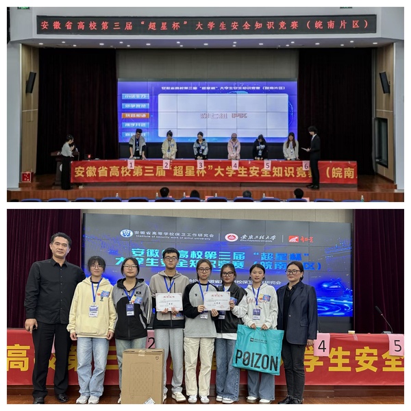 11月2日,安徽省高校第三届“超星杯”大学生安全知识竞赛(皖南片区)线下赛在安徽工程大学举行。我校2支代表队分别斩获一等奖、二等奖。