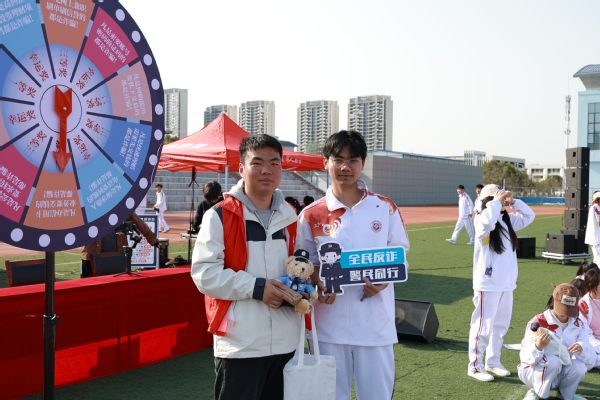 经开区刑警大队民警甘刘祥、彪序梅等带领学生参与“警察小熊”闯关赛,智夺百样多变的小礼品掀起了反诈热潮。活动现场“反诈大转盘”、“有奖问答”等游戏,将“AI 换脸诈骗”“虚拟货币陷阱”等新型诈骗手段融入其中,现场欢声笑语,反诈知识深入人心。