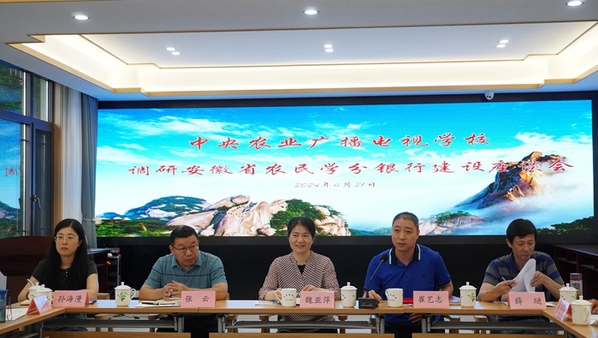 深入贯彻落实2024年中央一号文件关于“发挥普通高校、职业院校、农业广播电视学校等作用,提升农民教育培训的实效”的要求,推动农民培训与职业教育相衔接,我校作为全国首家农民终身教育学分银行实体运行试点建设单位,近年来积极探索农民终身教育的新途径,推进农民职业技能培训和学历继续教育的有效融通。6月20日-21日中央农业广播电视学校体系建设处处长魏亚萍和安徽省农业广播电视学校崔艺志主任一行赴我校对安徽省农民学分银行建设情况进行实地考察。校党委副书记李克让、潜山市副市长戴海兵出席会议,安庆市农业广播电视学校、潜山市农业农村局、潜山市农业广播电视学校及我校相关部门的负责同志参加调研交流。会议由崔艺志主持。