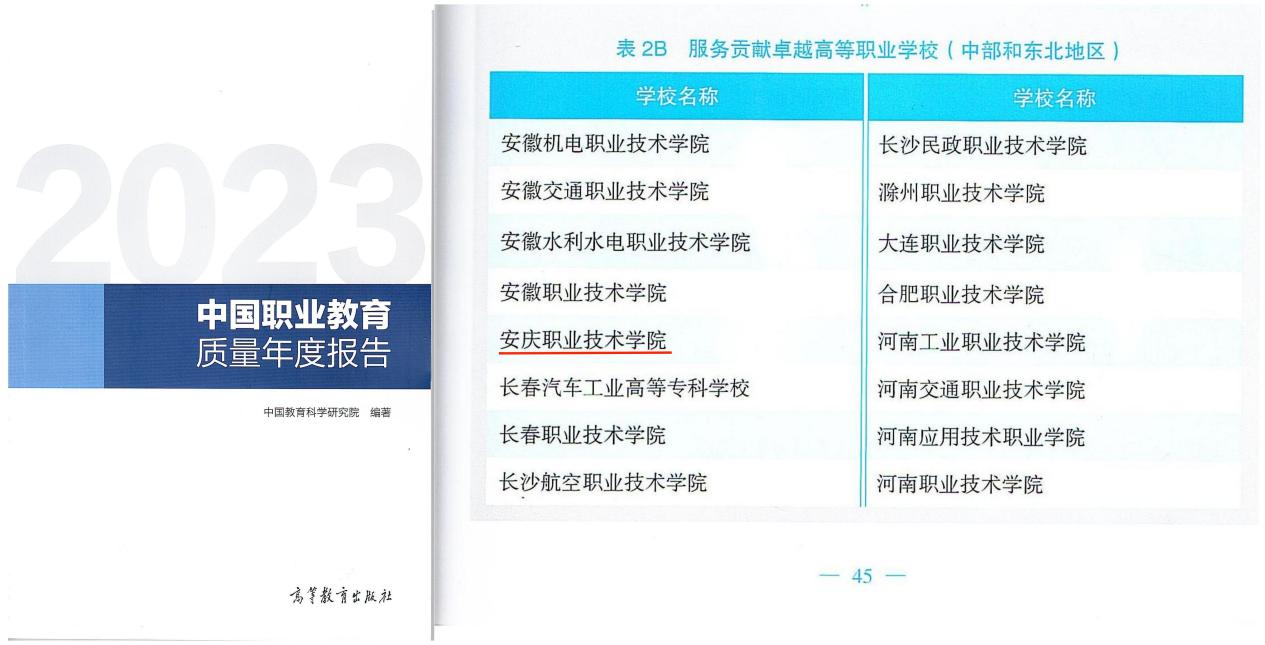 近日,由中国教育科学研究院牵头完成的《2023中国职业教育质量年度报告》出版发行,我校入选50所服务贡献卓越高等职业学校。这是我校办学质量的又一大硕果。