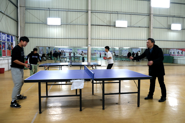 童宏葵一行先后走访了篮球场、足球场、1号体育馆、2号体育馆及教师办公室等场所,详细了解公共基础课程建设情况,与课程负责人、授课教师和同学们进行了深入交流。在乒乓球馆,童宏葵与正在打乒乓球的同学们亲切交流,鼓励他们多参加体育锻炼,提高身体素质,并拿起球拍一起体验。