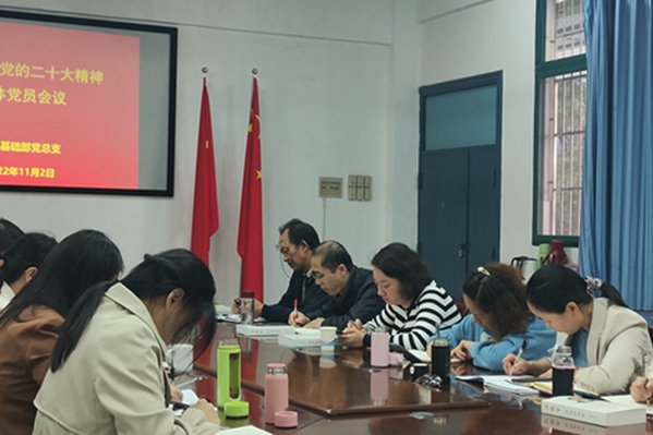 11月2日下午,在3号教学楼106会议室,公共基础部党总支组织全体党员开展党的二十大精神专题学习,党总支书记张林主持学习会。