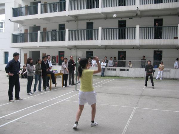在院工会精心组织下,2010年教职工羽毛球比赛于6月6日降下帷幕。本次比赛为团体赛,内设男单、女单、男双、女双和混双五个单项。以分会为单位,一共有九支代表队71名男女运动员参加了比赛。各代表队赛前积极训练,精心备战,许多系部、处室负责人也参加到比赛中来。比赛过程既紧张激烈,又充满了欢声笑语,为广大师生奉献了一场场精彩的比赛。担任本次比赛的裁判全部来自各系部爱好羽毛球运动的学生,他们工作认真负责,积极主动,公正裁判,得到了参赛老师们的一致好评,也为本次比赛增添了一道靓丽的风景。