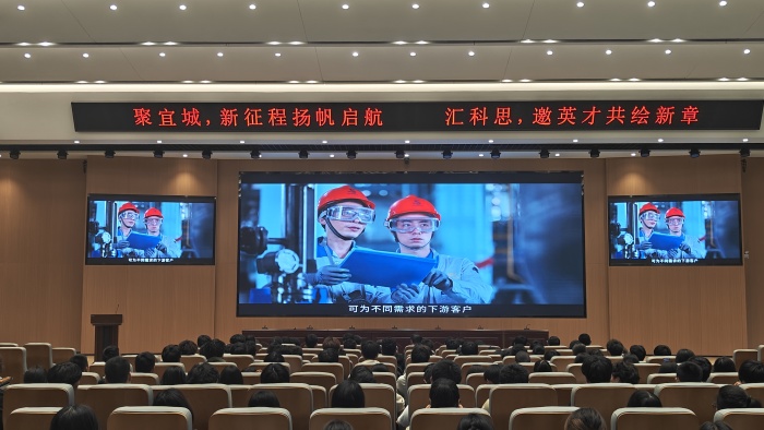为了让参观师生进一步了解科思化学,公司人力资源部人员还通过宣传视频向大家展示了公司的企业文化和业务范围。人力资源部经理王翥翔向大家详尽介绍了科思化学在团队建设、职工人文关怀以及人才培养、个人职业发展等方面的具体措施,并与同学们积极互动交流,现场气氛活跃。