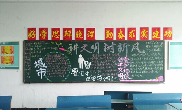 为了进一步贯彻落实学工委《关于在学生中组织开展文明创建系列活动的通知》相关要求,引导全系师生以实际行动深入开展文明创建活动,机电系团总支于4月14日中午组织了 “讲文明、树新风”主题黑板报评比活动。