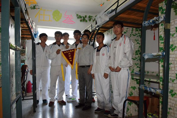 毕明生为部分“文明寝室”亲自悬挂流动红旗,并鼓励同学们发挥模范带头作用,带动身边同学共同创造良好的生活学习环境。