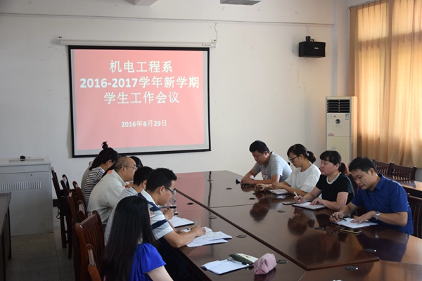 8月29日上午在1号教学楼208会议室,机电工程系召开了新学期学生工作会议。系分管学生工作负责同志出席会议,全体辅导员班主任参加会议。