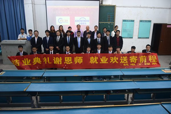 两载时光飞逝过,一朝欢聚话真情。又是一年实习时,又有一批学子要离开校园,走向社会实习深造。在这个离别的季节,机电工程系于10月19日在一栋教学楼216教室隆重举办14级中德班实习就业欢送会。院校企合作办主任张林出席会议并讲话,中德总部负责人韩雪娇、系分管教学工作负责同志、系分管学生工作负责同志、相关专业课老师、辅导员参加会议。