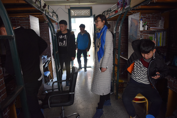 为了及时解学生返校及在校学生寝室安全情况,2月13日下午,机电工程系全体专兼职辅导员带领部分学生干部,深入学生寝室,开展寝室卫生及安全情况大检查。 全体专兼职辅导员有针对性、有目的性的对宿舍进行了全面检查。重点针对同学们返校情况、新学期的学习安排、宿舍用水用电的安全等问题,并对在检查中出现的问题进行了及时的指导。同时叮嘱同学们,在流感高发季节要注意开窗透风保持个人卫生。 通过此次检查,增进了辅导员和同学们之间的交流与沟通,也有利于学生寝室良好生活环境与学习氛围的保持。(文/图 项亮瑜)