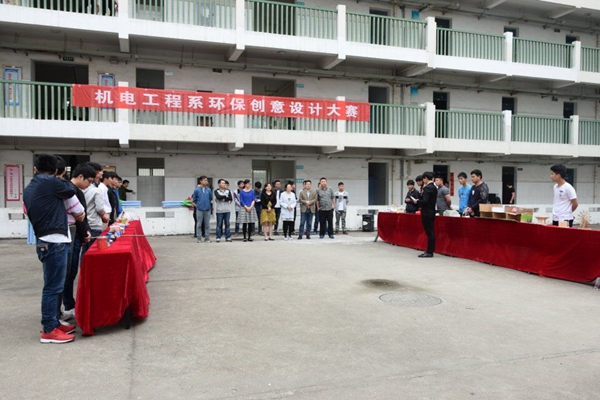 为了使同学们养成废物利用和节约资源的好习惯,提高同学们创新设计能力、综合设计能力和协作精神,机电工程系于4月26日在二栋宿舍楼举办了“环保创优设计大赛”。担任本次大赛评委的有系分管学生工作负责同志、系团总支副书记以及各位专兼职辅导员。