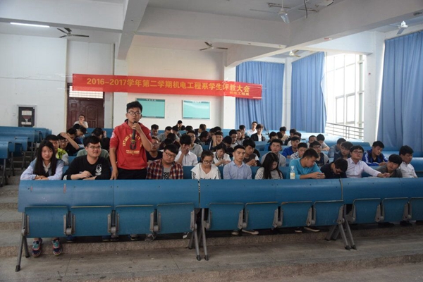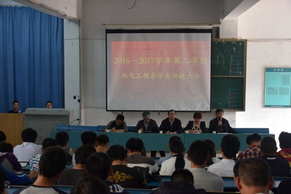 为全面提高我系教学质量,让学生做学习的主人,5月3日,机电工程系在一栋教学楼216教室召开了“2016-2017学年第二学期学生评教大会”,参加此次会议的有院教学督导、系分管教学工作负责同志和系分管学生工作负责同志,以及15、16级各班学生代表。