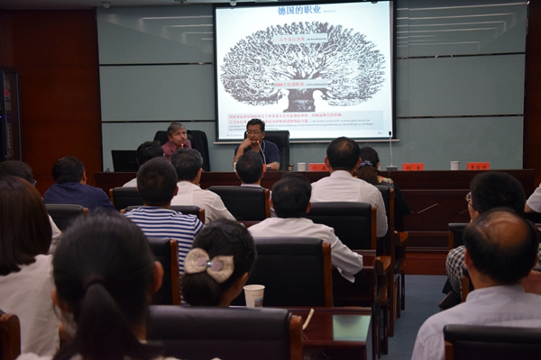 为推动安庆职业教育的不断发展,加深安庆市企业和学校对于智能制造、工业4.0、中国制造2025的认识,完善现代化职业教育发展规划,对接企业对高技能人才培养的需求,完善校企合作的人才培养模式,5月18日,装备制造协作委与北京德信合力咨询有限公司共同邀请德国资深职教专家乌沃·海博博士来宜开展“安徽·安庆市‘中德工业4.0人才培养高级管理研修班’”,院领导谭维奇,教务处、办公室相关负责人、机电工程系相关教师及百余名职教联盟成员参加了本次研修班。