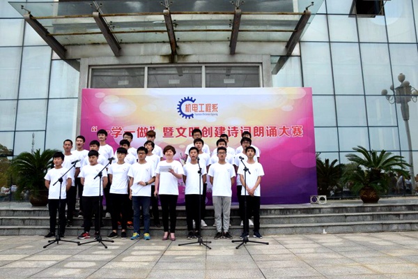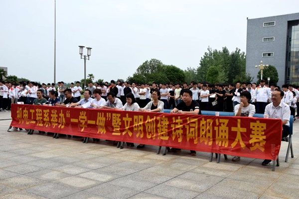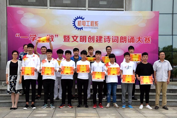 为进一步丰富校园文化生活,营造浓厚的书香校园氛围,机电工程系于6月14日在一号实训楼广场举办了“一学一做”暨文明创建诗词朗诵比赛。系分管教学工作负责同志、系分管学生工作负责同志及专兼职辅导员出席并担任评委,参加此次比赛的为大一全体同学。
