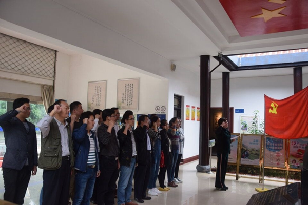 步入庄严、肃穆的展馆,大家来到黄镇同志的雕像前,静静肃立。随后,在鲜艳的党旗前,在系学生工作负责同志的带领下,大家紧握右拳,重温入党誓词,坚定理想信念。“我志愿加入中国共产党,拥护党的纲领,遵守党的章程,履行党员义务……”铮铮誓言响彻纪念馆上空。通过重温入党誓词,激励党员不忘党员身份,增强党性观念;不忘入党动机,净化思想和心灵;不忘党员义务和宗旨,无私奉献,做一名无悔于党员称号、无悔于入党誓词的真正的共产党员。