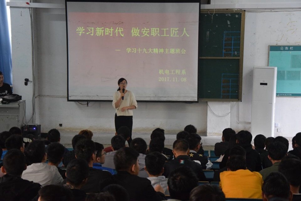 党的第十九次全国代表大会是中国特色社会主义在发展的关键时期,在我国全面建成小康社会决战时期的一次重要会议,事关党和国家事业蒸蒸日上、中国特色社会主义道路未来的发展方向和全国最广大人民的根本利益。党的十九大报告指出,中国特色社会主义已经进入了新时代,这一论断具有重要的历史意义。为了学习贯彻党的十九大精神,机电工程系根据自身专业特色,特开展了“学习新时代,做安职工匠人”的系列活动。
